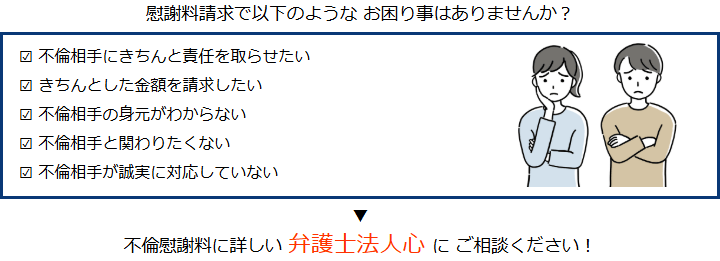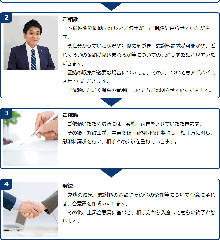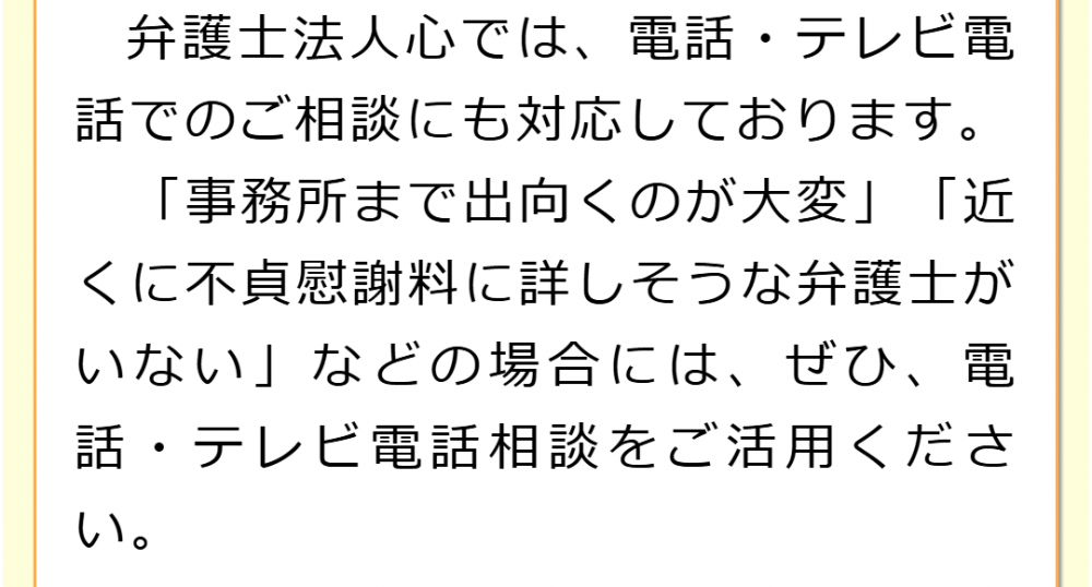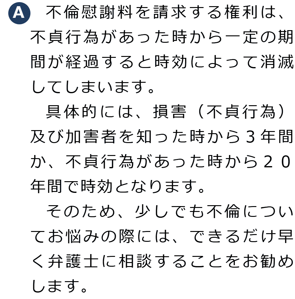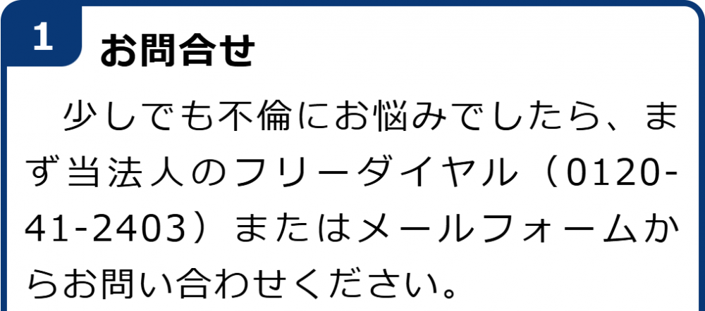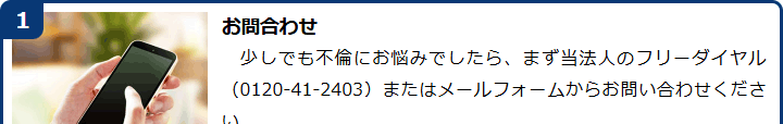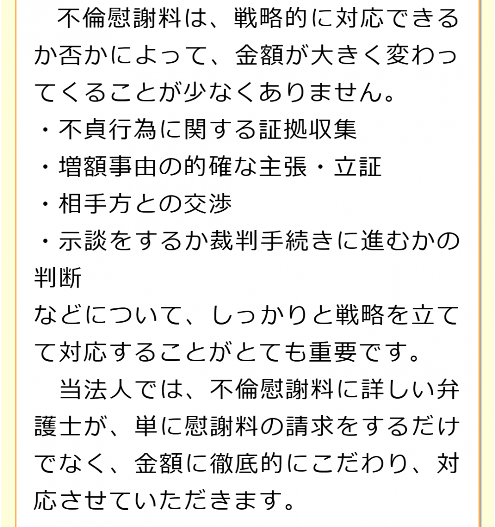 不倫慰謝料請求でお困りの方へ 閉じる 閉じる よくあるご質問 お問合せから解決までの流れ 受付時間 平日 9時~21時、土日祝 9時~18時夜間・土日祝の相談も対応します(要予約) 所在地 〒286-0033 千葉県成田市花崎町801-1京阪成田ビル6F (千葉県弁護士会) 0120-41-2403 お問合せ・アクセス・地図