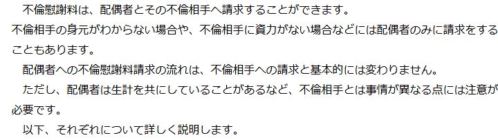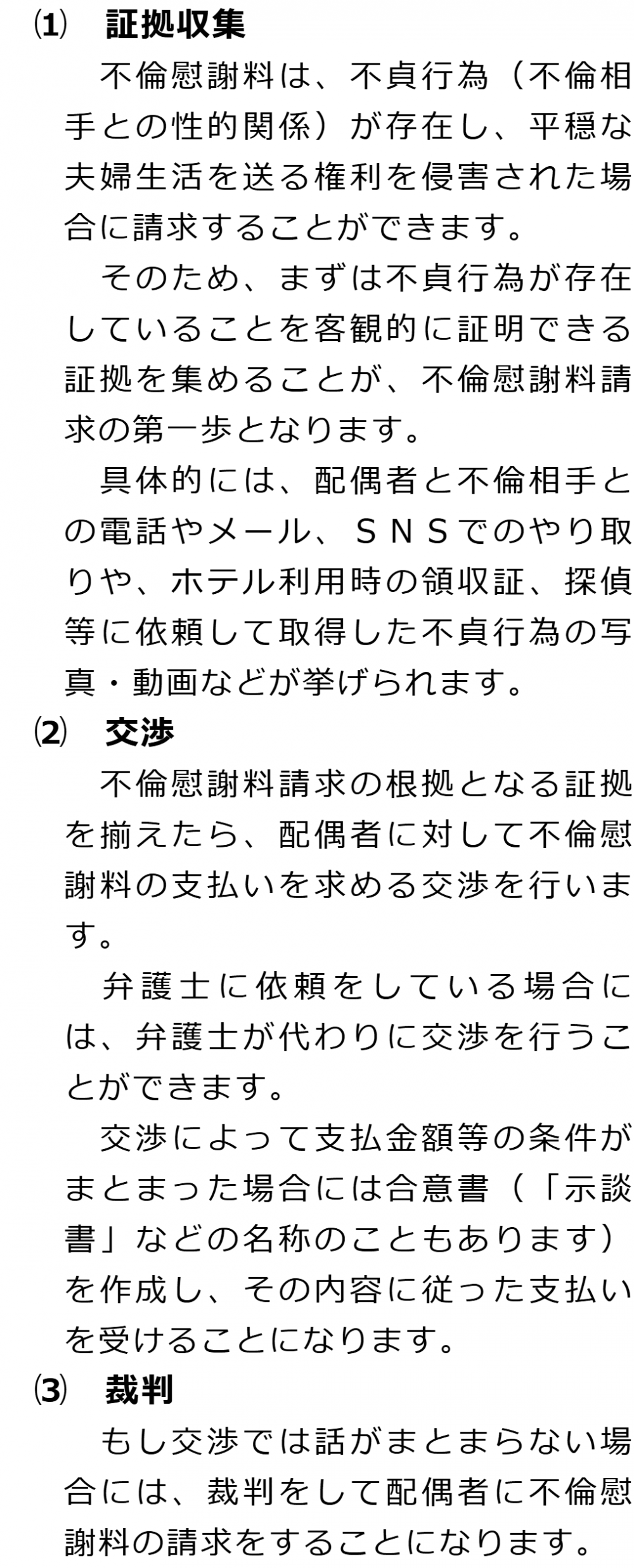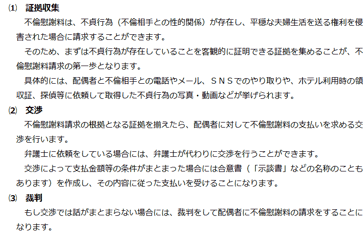 配偶者に不倫慰謝料を請求する場合の流れ1 配偶者への不倫慰謝料請求とその注意点について2 配偶者への不倫慰謝料請求の流れ3 配偶者に不倫慰謝料請求をする場合の注意点 1 配偶者への不倫慰謝料請求とその注意点について2 配偶者への不倫慰謝料請求の流れ3 配偶者に不倫慰謝料請求をする場合の注意点